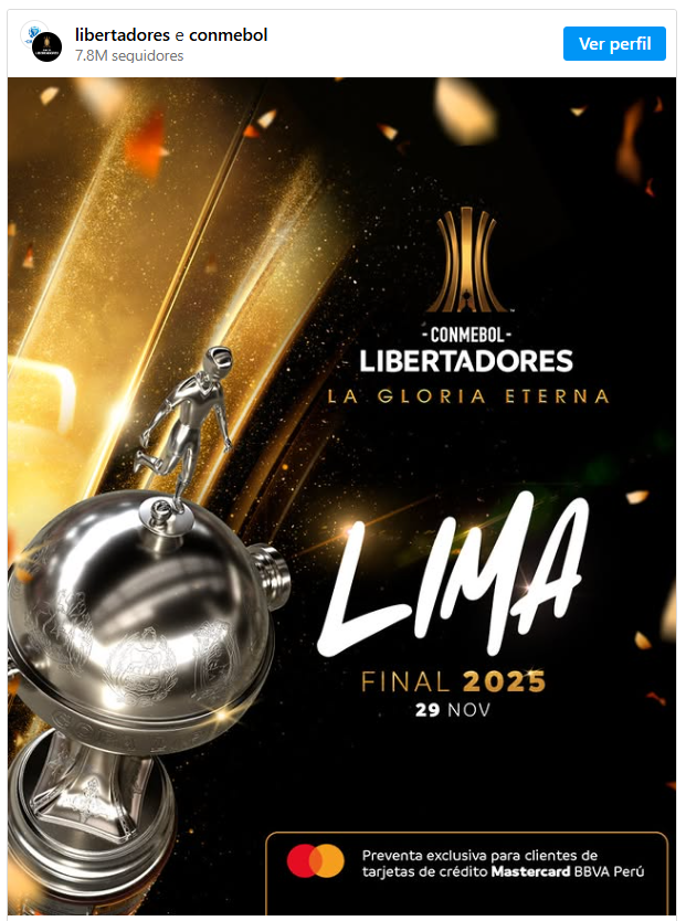 Conforme informação divulgada nesta sexta-feira (31), a Conmebol confirmou que a final da Libertadores de 2025 será mantida em Lima, no Estádio Monumental, no dia 29 de novembro. A entidade sul-americana reforçou que não há qualquer possibilidade de alteração da sede, mesmo após o presidente da CBF, Samir Xaud, sugerir que o duelo entre Palmeiras e Flamengo pudesse ser transferido para o Brasil, com Belém sendo uma das cidades indicadas.