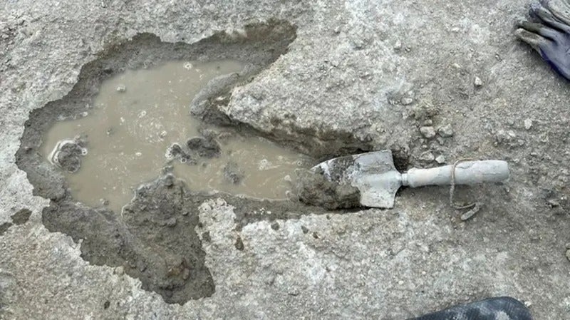 Essas pegadas foram feitas há 166 milhões de anos, quando um dinossauro caminhou sobre uma lagoa — Foto: PA Media