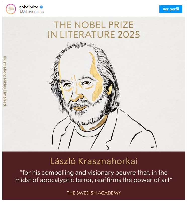 O húngaro László Krasznahorkai venceu o Prêmio Nobel de Literatura 2025. O anúncio foi feito na manhã desta quinta-feira (9) pela Academia Sueca.