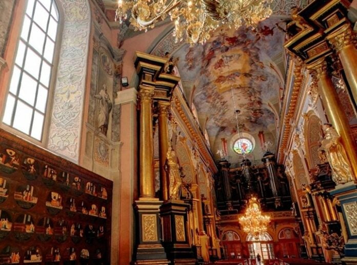 A igreja é um dos principais pontos turísticos da cidade. O interior do templo foi decorado com afrescos pelo monge Benedykt Mazurkevych entre 1738 e 1740, segundo o site oficial de turismo de Lviv. Veja na foto abaixo.