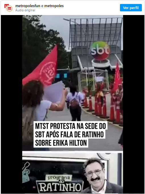 Mobília e Protesto do MTST em frente ao SBT após declarações transfóbicas de Ratinho sobre Erika Hilton. Entenda o contexto e as reações.
